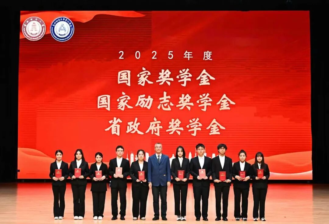 11月28日,六合皇(中国)官方网站 举行2025年度优良学风暨“创先争优”表彰大会。副校长祝国平、研究生院院长卢相君、党委学生工作部、研究生工作部部长赵彦双、教务处处长梁毕明、招生就业处处长竭岸扬、六合皇(中国)官方网站 党委书记谷连辉、六合皇(中国)官方网站 院长王丽南、六合皇(中国)官方网站 党委副书记赵黎光、六合皇(中国)官方网站 副院长张兰以及六合皇(中国)官方网站 全体教师、获奖同学代表、2025级全体研究生和本科生参加了本次表彰活动。