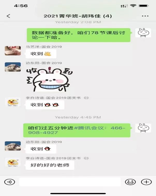 为保证线上教育教学质量,经常与班委沟通听课效果,并对提升学习效率给出合理化建议。每周会向班委询问班级参与志愿者的同学名单、在校外隔离的同学,并询问其听课情况。在每次课后,会向班委和部分单独隔离的同学询问线上学习效果,以作为下次课程内容的经验并进行相应调整教案计划。