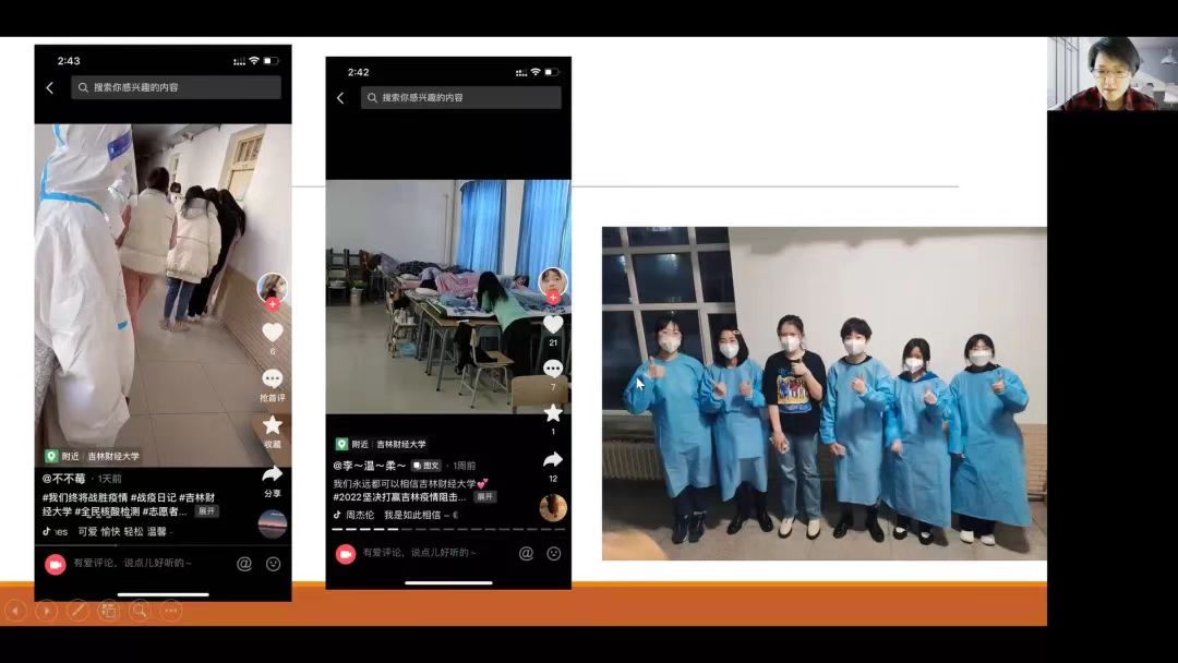 在本学期准备澳方全英课程过程中,与学生同频参加澳方老师的课程内容,以有效把握课程重点。对澳方布置的习题内容及时与同学们进行沟通、答疑,并随时解惑。经常和学生分享自己居家隔离时提高学习效率的心得,为同学们安心学习、静心学习、有效学习提供和树立榜样。同时分享自己居家隔离时保证身体健康的室内锻炼方法,与学生风雨同舟,共同应对防疫阻击战。