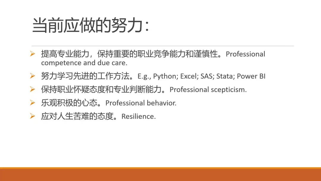 为保证高效地完成教学工作,利用课余时间大量搜集资料,用心钻研课程融入思政内容,对课前五分钟的“抗疫精神”教导中,融入《ACA-审计与鉴证》的课程专业知识。以期警醒学生在战“疫”中提升“专业知识”。“立身以立学为先,立学以读书为本”,提示同学们学习需要时刻保持常态化、持久化,突出了终身学习的重要性,并重新思考未来职业规划。