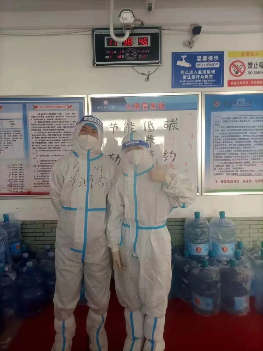 我还记得有一天很晚了,七舍的核酸自测盒还没取,许老师在群里看到了消息,什么都没说,就去校医院把那么多箱试剂盒一个人搬了回来……搬餐,做核酸,疏导情绪,这些已成包括许老师在内的所有老师的常态,他们,是我们的榜样,是我们心底的光。